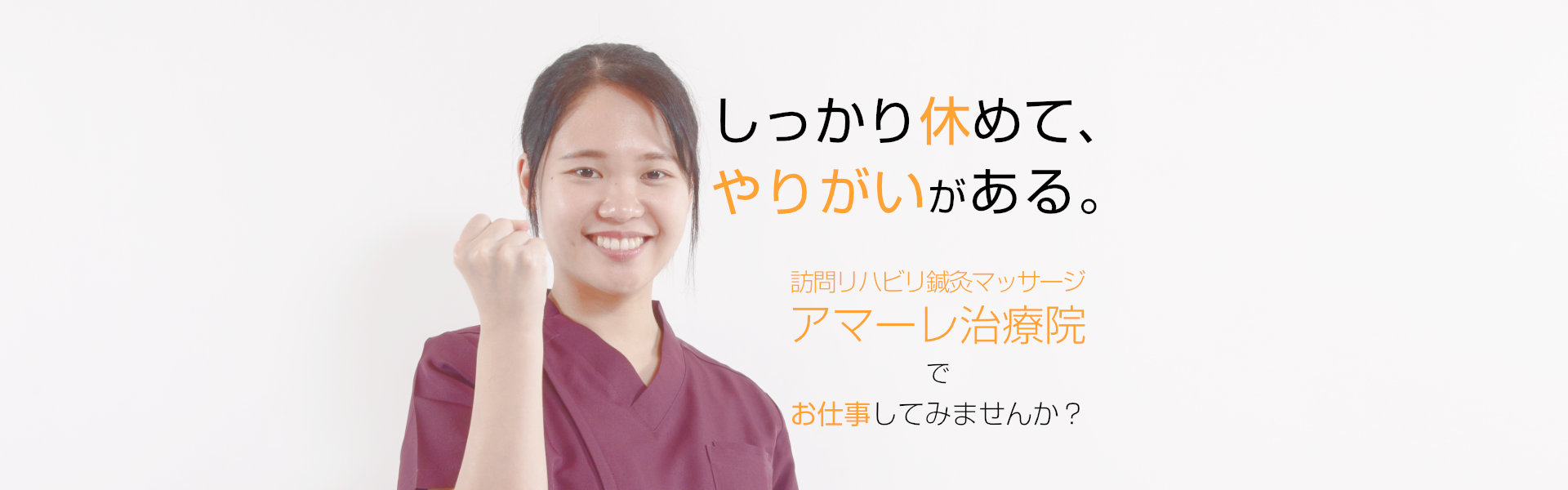 | 応募資格: | ●あんま指圧マッサージまたは鍼灸師の国家資格免許保持者 ●現場実務経験が1年以上 ●普通自動車免許(最低原付免許) ※マイカーまたは原付使用が可能な方へは手当支給 ●簡単なPC操作ができる方 ※訪問、機能訓練指導員経験者歓迎、優遇 ※土日勤務可能な方歓迎 |